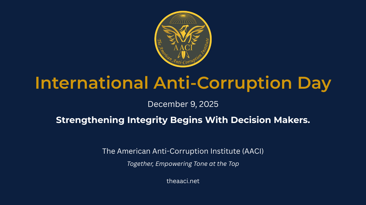 Today, we reaffirm something sharper than awareness: accountability. The AACI Ten Principles of Fighting Corruption (https://www.theaaci.net/Principles-of-Fighting-Corruption/) and our expanding Standards on Fighting Corruption (https://www.theaaci.net/Standards-on-Fighting-Corruption-(SFCs)/) provide leaders with a practical roadmap to deter, prevent, detect, and help correct corruption before it becomes systemic.